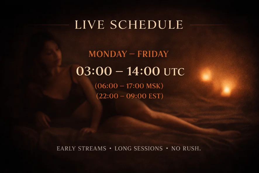 In my account you can see the schedule of my broadcasts and find out when I will be online
